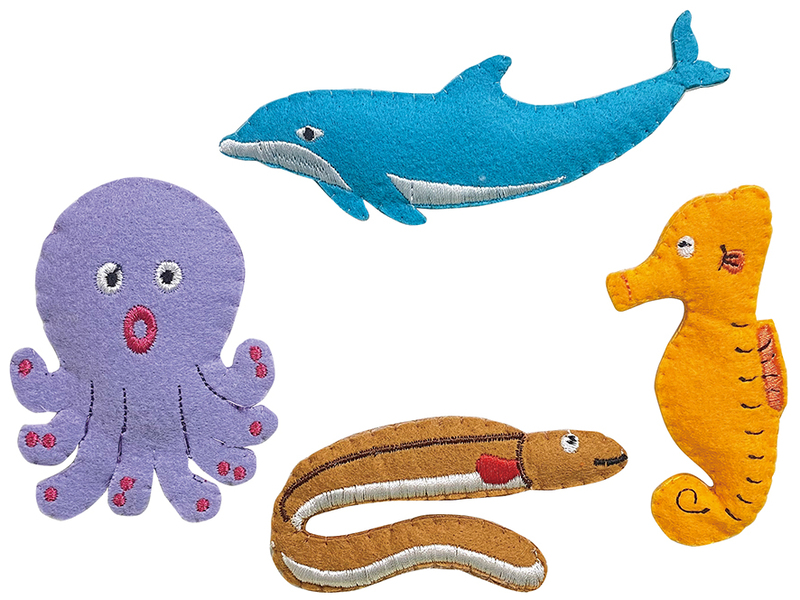 - Fabric "Ocean Floor" with 12 felt ocean creatures and 2 fishing rods.